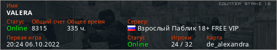 Играет на Counter Strike 1.6 сервере. Страна: РоссияПервый раз замечен 20:24 06.10.2022