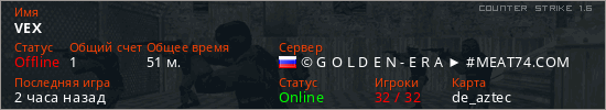 Играет на Counter Strike 1.6 сервере. Страна: РоссияПервый раз замечен 20:30 13.02.2026