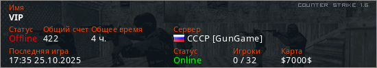Играет на Counter Strike 1.6 сервере. Страна: РоссияПервый раз замечен 10:51 10.05.2023