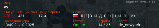 Последний раз был в сети 13:40 21.10.2025 Игрок с таким ником замечен на 24 серверах