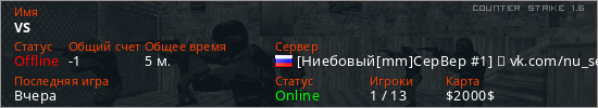 Играет на Counter Strike 1.6 сервере. Страна: РоссияПервый раз замечен 09:59 06.04.2026