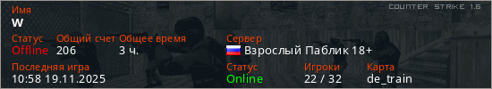 Последний раз был в сети 10:58 19.11.2025 Игрок с таким ником замечен на 46 серверах