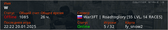 Играет на Counter Strike 1.6 сервере. Страна: РоссияПервый раз замечен 08:49 18.09.2021