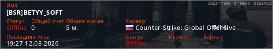 Играет на Counter Strike Source сервере. Страна: РоссияПервый раз замечен 19:20 12.03.2026