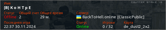 Последний раз был в сети 22:37 30.11.2024 Игрок с таким ником замечен на 51 сервере