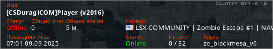 Играет на Counter Strike 1.6 сервере. Страна: СШАПервый раз замечен 06:54 09.09.2025