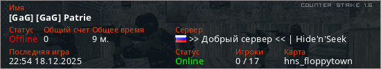 Общая информация игрока