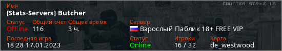 Последний раз был в сети 18:28 17.01.2023 Игрок с таким ником замечен на 9 серверах