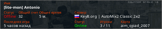 Последний раз был в сети 4 часа назад Игрок с таким ником замечен на 30 серверах