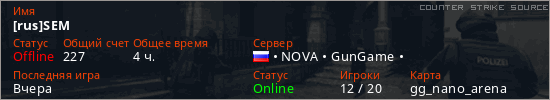Общая информация игрока