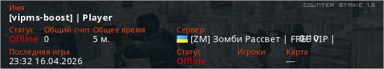 Играет на Counter Strike 1.6 сервере. Страна: УкраинаПервый раз замечен 23:30 16.04.2026