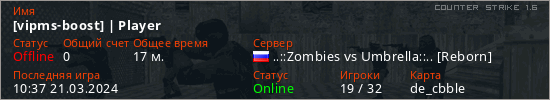 Играет на Counter Strike 1.6 сервере. Страна: РоссияПервый раз замечен 20:14 29.09.2023
