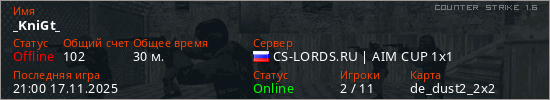Играет на Counter Strike 1.6 сервере. Страна: РоссияПервый раз замечен 17:15 12.11.2025