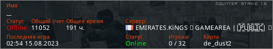 Последний раз был в сети 02:54 15.08.2023 Игрок с таким ником замечен на 26 серверах