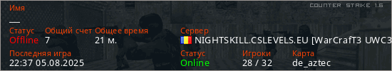 Играет на Counter Strike 1.6 сервере. Страна: РумынияПервый раз замечен 17:54 22.09.2024