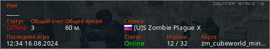 Последний раз был в сети 12:34 16.08.2024 Игрок с таким ником замечен на 32 серверах