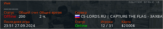 Играет на Counter Strike 1.6 сервере. Страна: РоссияПервый раз замечен 08:42 24.10.2021