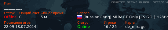 Играет на Counter Strike Global Offensive сервере. Страна: РоссияПервый раз замечен 21:51 18.07.2024