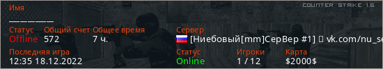 Последний раз был в сети 12:35 18.12.2022 Игрок с таким ником замечен на 25 серверах
