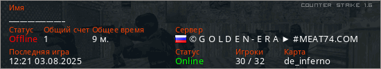 Играет на Counter Strike 1.6 сервере. Страна: РоссияПервый раз замечен 07:43 04.08.2024