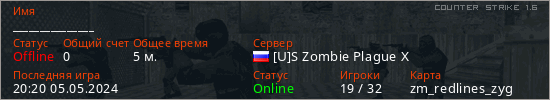 Играет на Counter Strike 1.6 сервере. Страна: РоссияПервый раз замечен 20:18 05.05.2024