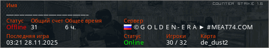 Последний раз был в сети 03:21 28.11.2025 Игрок с таким ником замечен на 31 сервере