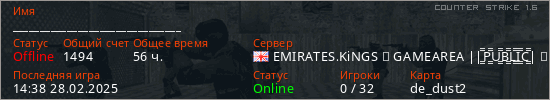Последний раз был в сети 14:38 28.02.2025 Игрок с таким ником замечен на 31 сервере