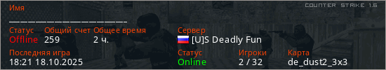 Последний раз был в сети 18:21 18.10.2025 Игрок с таким ником замечен на 31 сервере