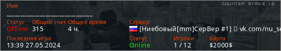 Играет на Counter Strike 1.6 сервере. Страна: РоссияПервый раз замечен 17:08 18.02.2021
