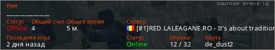 Играет на Counter Strike 1.6 сервере. Страна: РумынияПервый раз замечен 12:57 20.01.2026