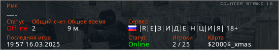 Последний раз был в сети 19:57 16.03.2025 Игрок с таким ником замечен на 32 серверах