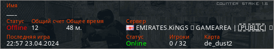 Играет на Counter Strike 1.6 сервере. Страна: ВеликобританияПервый раз замечен 13:28 18.07.2021