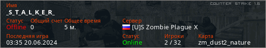 Играет на Counter Strike 1.6 сервере. Страна: РоссияПервый раз замечен 03:33 20.06.2024