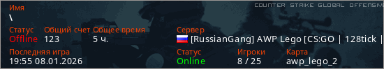 Играет на Counter Strike Global Offensive сервере. Страна: РоссияПервый раз замечен 18:00 09.01.2024