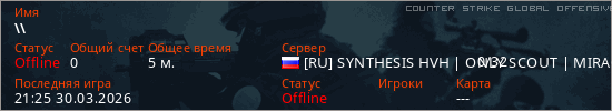 Играет на Counter Strike Global Offensive сервере. Страна: РоссияПервый раз замечен 20:58 30.03.2026