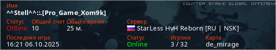 Играет на Counter Strike Global Offensive сервере. Страна: РоссияПервый раз замечен 08:21 24.09.2025