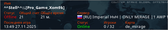 Играет на Counter Strike Global Offensive сервере. Страна: РоссияПервый раз замечен 12:21 05.09.2025