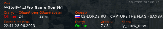 Последний раз был в сети 22:41 28.06.2023 Игрок с таким ником замечен на 21 сервере