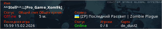 Играет на Counter Strike Global Offensive сервере. Страна: УкраинаПервый раз замечен 15:57 15.02.2026