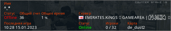 Последний раз был в сети 10:28 15.01.2023 Игрок с таким ником замечен на 16 серверах
