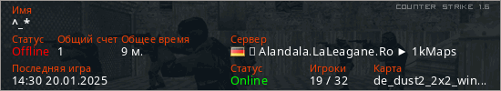 Последний раз был в сети 14:30 20.01.2025 Игрок с таким ником замечен на 16 серверах