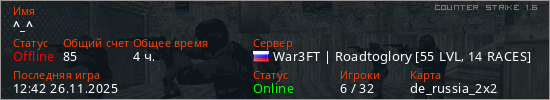 Играет на Counter Strike 1.6 сервере. Страна: РоссияПервый раз замечен 19:47 06.05.2021