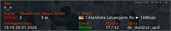 Играет на Counter Strike 1.6 сервере. Страна: ГерманияПервый раз замечен 12:58 26.01.2026