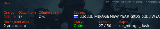 Последний раз был в сети 2 дня назад Игрок с таким ником замечен на 47 серверах