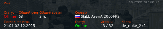 Последний раз был в сети 21:01 02.12.2025 Игрок с таким ником замечен на 47 серверах