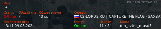 Играет на Counter Strike 1.6 сервере. Страна: РоссияПервый раз замечен 13:23 04.02.2023