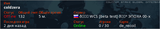 Играет на Counter Strike Global Offensive сервере. Страна: РоссияПервый раз замечен 20:58 05.03.2026