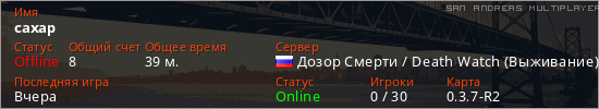 Играет на San Andreas Multiplayer сервере. Страна: РоссияПервый раз замечен 16:15 14.04.2026