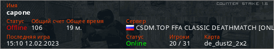 Последний раз был в сети 15:10 12.02.2023 Игрок с таким ником замечен на 11 серверах