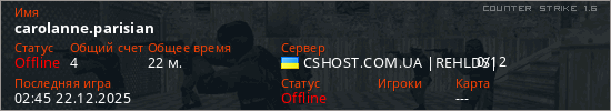 Играет на Counter Strike 1.6 сервере. Страна: УкраинаПервый раз замечен 22:38 14.12.2025